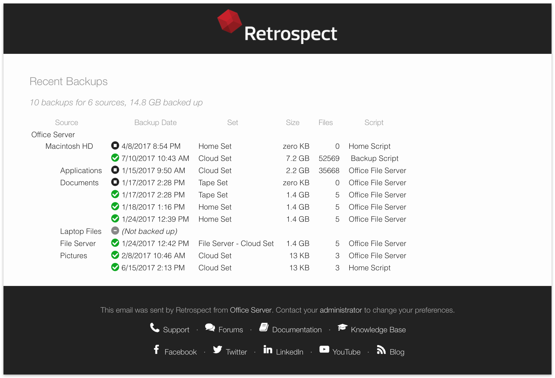 The “Backup Report” is one of Retrospect’s most popular features, and now it’s available as a daily email. Customers can keep tabs on every computer in their environment without leaving their inbox. This new email feature is available in both Retrospect 12.5 for Windows and Retrospect 14.5 for Mac.